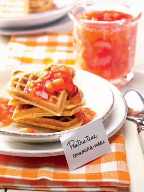 Produsul preparat se poate servi cu îngheţată, iaurt sau vafe.